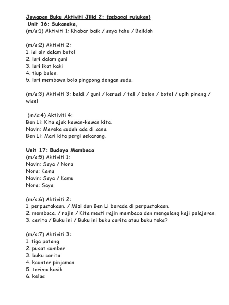 So this tool was designed for free download. Bahasa malaysia tahun 1 jawapan buku aktiviti jilid 2. Pakej Buku Teks Bahasa Melayu Tahun 2 SK mengandungi dua komponen iaitu Buku Teks BT dan Buku Aktiviti BA.